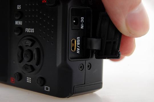 机身右侧提供了视频输出/USB接口以及充电口,由于相机本身羸弱的视频拍摄功能,目前主流的HDMI接口并没有出现在DP2s上。