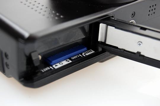 机身底部看见了熟悉的电池仓和存储卡槽。