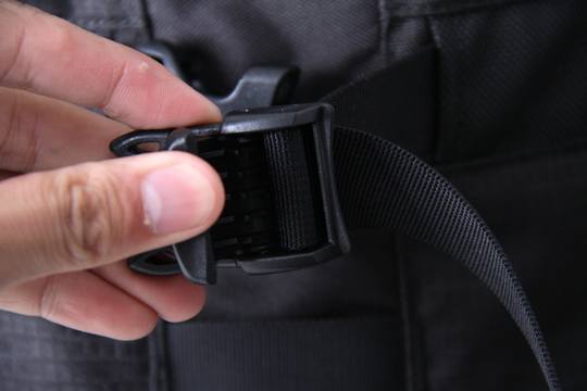 和以往产品相似,产品在背负保护性上也做了不少文章,诸如两侧的护腰,以及背部的贴合设计、胸部的固定扣,以及乐摄宝的可调节搭扣。