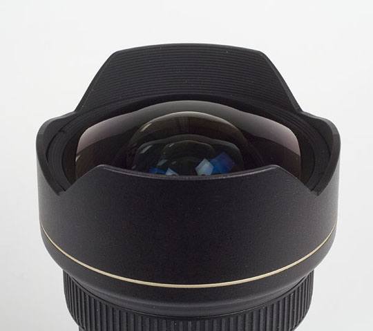 在光学设计上,Nikkor AF-S 14-24mm f/2.8 G ED N类似与尼康之前的一款老镜头AF 14mm f/2.8ED。相似与鱼眼的外凸镜片,让其无法配备滤光镜等等附件,在这一点上适马12-24mm f/4.5-5.6 EX HSM与其非常相似,如此赤裸裸的暴露在镜外头不仅无法配备附件,而且这一部分的脆弱也让用户感到担心。