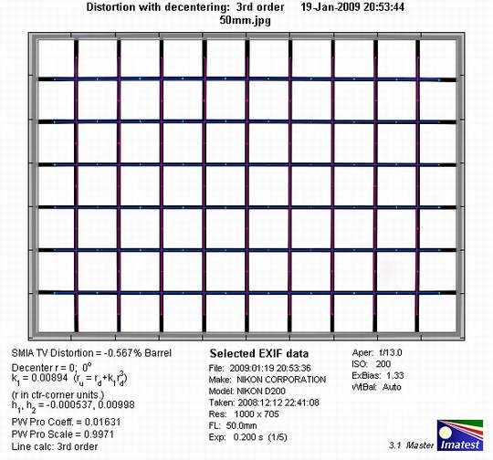 这款镜头的桶形畸变为0.6%,对于定焦镜头而言这一数据不免有些说不过去。但这一部分的原因也可能是来自于某些外部因素。
