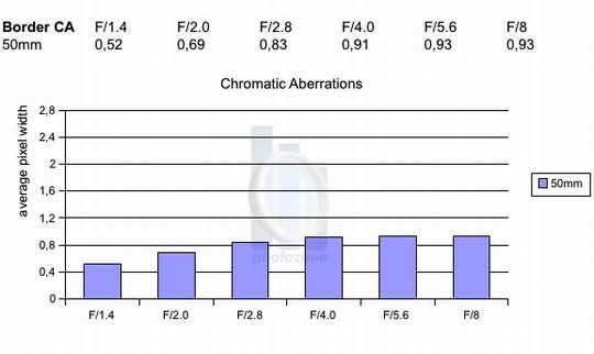 我们从数据上看出,在光圈较大的情况下这款镜头的色差相对较低。