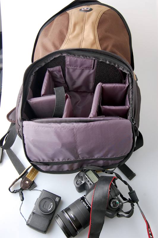 器材仓位比较充裕,诸如一台α900或者D700这类全幅相机再或者7D这样的aps-c旗舰相机外加4款3倍光学变焦镜头、一个闪光灯、测光表应该是绰绰有余的。如果是类似70-200/2.8这类中长焦镜头的话,在另外配备两款变焦镜头空间上还是足够的。基本上可以保证,一台机身,数只镜头的配置是完全没有问题。