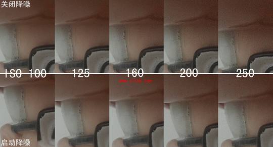 先看ISO 100到250启动和关闭降噪的差别。在这个范围内噪音控制的还不错,关闭降噪时暗部稍有一些噪音,可以忽略不计。(点击查看大图)