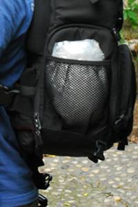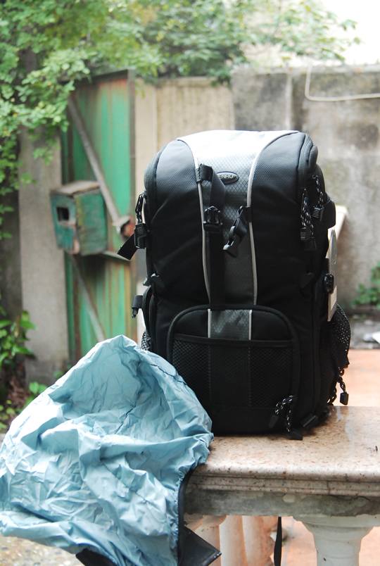百诺变色龙摄影包的防雨罩也依旧如其之前推出的几款摄影包一般,采用外置式,并且有一个搭扣扣于肩带上。中间至底部的主体部位是用来放置相机、镜头等摄影器材。初步尝试了一下大约可以放置两机三镜。但是如果是配有竖拍手柄的相机和长焦镜头的话则相对有些吃紧。