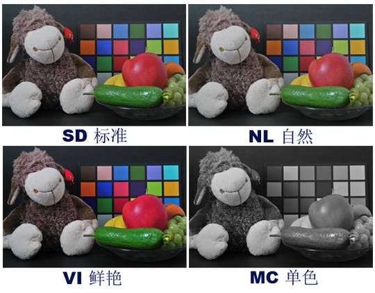 通过IMATEST软件对ColorChecker测试图进行分析,D300s表现出蓝、褐色的色彩倾向。