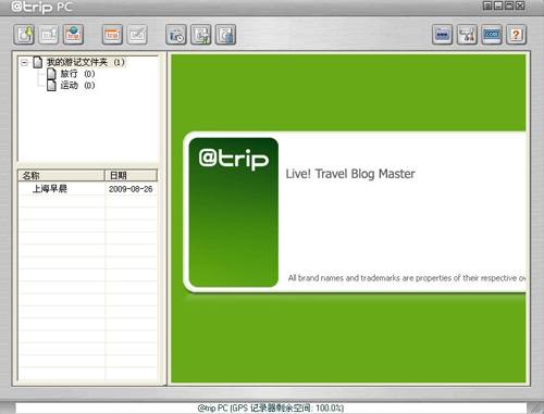 长方形产品中间硕大的圆形按钮就是GPS记录按钮,长按之后出现蓝色指示灯,产品便开始了记录工作,随机附带的软件和数据线用来链接电脑后便可以进行记录时间的微调。机器会随着设定的时间进行定时记录地理讯息。默认设置为6秒。当记录结束后,再次长按会出现红色指示灯,机器随之关闭,讯息也随之记录完毕。在这里要提醒用户的是,在出行前请事先核对好GPS与相机的时间,以免在行程中因为时间误差而出现记录错位的情况。