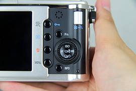 操作拨盘及主要按键位于机身右侧,一目了然,很快就能进行相机性能设置和拍摄,较容易掌握。