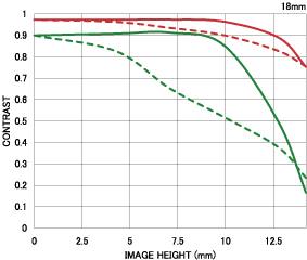 镜头在18mm端由较大的桶形畸变,50mm表现比较好,没有太明显的变形,120mm、250mm的枕形畸变都只在0.4%级别,控制得比较好。