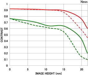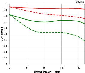 镜头在70mm端有肉眼几乎看不出来的轻微桶形畸变,135mm和300mm端都存在程度不同的枕形畸变,所幸数值并不是很大,该镜头属于畸变控制得比较好的镜头。