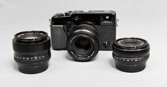 X-Pro1的机身不能算小巧轻薄,手大的人握持感良好,搭配这三支镜头比较协调。