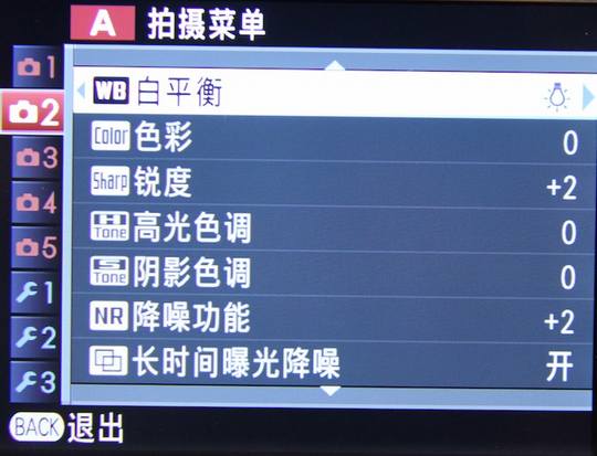 拍摄菜单,可以清楚的看到左边有5栏进行调整,可调选项比较丰富