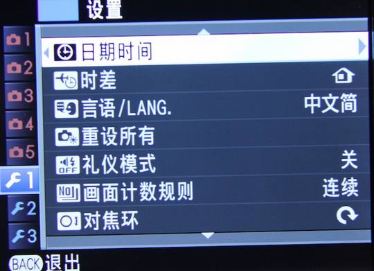 我们来看一下X-Pro1的菜单部分,总体来说X-Pro1的菜单设计不算复杂,比较容易短时间上手操作。