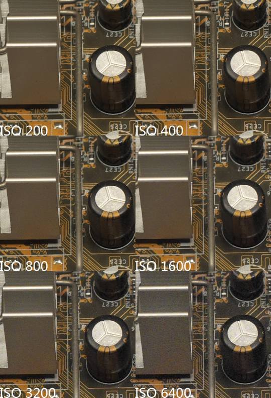 X-Pro1的ISO是从200开始的,从上图放大仔细观看后我们可以发现这块传感器带来的低噪点表现确实很惊艳,ISO800以下图像非常的干净,主板线路清晰可见,从ISO1600开始才微微有些噪点,也完全在可接受范围以内,ISO3200的噪点比ISO1600要稍微多一点但也仍然有一定的可用性,而到了ISO6400,虽然噪点已比较明显,但是别忘了这是一块APS-C画幅的传感器表现,其水平已经超越了绝大部分市面上的APS-C机型,说最强也许都不太过分,小编对这样的成绩还是比较满意的。