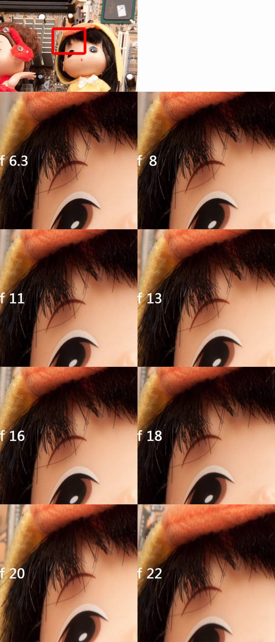 由于这只镜头的体积和焦段都比较特殊,因此对相机的对焦系统也有一定的考验,下面的锐度测试中,小编使用佳能 EOS50D机身拍摄,中心点对焦,我们来看看这只镜头的锐度表现。