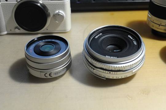 来和N家最小的全幅镜头45 2.8p比一下……顺便说声,单反我是N家的,但是1系实在提不起兴趣,总感觉画幅小了机器却大,我对画幅无所谓,但机器一定要足够小才行~,另外1系的外型总感觉还可以等等下一代……
