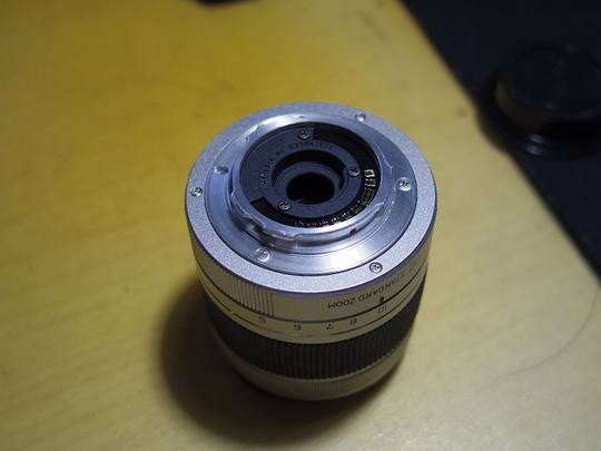 来看一下镜头,这只套头做工不错,底部是金属的,前半部不是,和E口变焦比较,这只头在最广时是伸出最长,和E口正相反。这镜头居然还有遮光罩卡口设计。