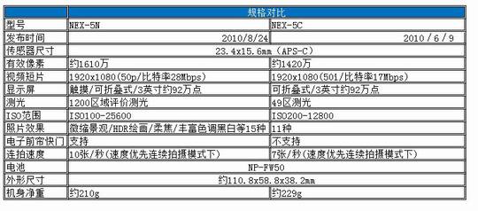 不过说实话索尼在命名上总是没什么规律,除了划分出“3、5、7”高中低三个档次(NEX-7为本系列最高端)。其他字母前缀后缀,有时候是代表某种含义,比如NEX-5N的N有“New(新的)”和“Next(下一代的)”之意。而NEX-5C中得C仅仅是国内销售代号,更多代表地域差异(日本型号没有C后缀)。作为普通消费者没必要细究这些型号命名,就国内而言字面上是“C→N”的升级哦!那么这款新品到底New在哪里?我们可以参考下面重要规格对比: