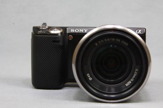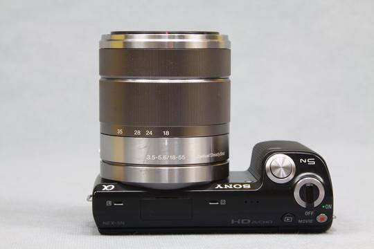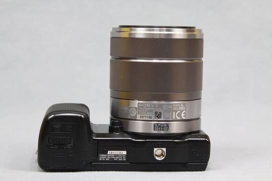 NEX-5N依旧延续了“平板(机身)+圆柱体(镜头)”的极简设计理念。 但小编觉得由于采用APS-C画幅图像传感器,造成镜头卡口也要随之增大,镜头自然也就比较“粗”。NEX-5N搭配索尼 E 18-55/3.5-5.6 OSS还是显得有些“头大身子小”,如果搭配索尼 E 18-200/3.5-6.3 OSS这种大体积镜头,镜头和机身的比例就极为不协调了。说到底一方面是索尼机身“瘦身”上非常激进(甚至比M4/3、尼康1还要薄还要小),但镜头“瘦身”上尚无举措。小编比较期待索尼未来的饼干定焦镜头和饼干变焦镜头。