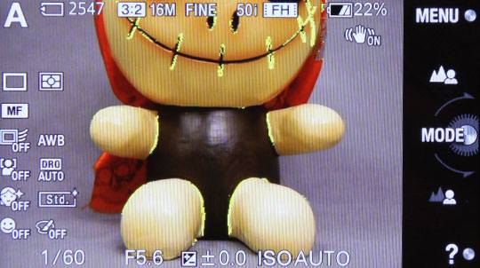 另外NEX-5N支持峰值显示(转接手动对焦十分实用),与此前我们评测的SLT-A77相同,可以选择峰值显示强度和显示颜色(白/红/黄),另外它也支持阴影、失真等校正,具体可以参照SLT-A77的评测,值得注意的是镜头校正固件的不同,支持镜头数量也不同,用户需要查询官网,看是否支持自己使用的镜头。至于电子前帘快门,小编在SLT-A77评测中已经详细介绍,这里要注意的是,电子前帘快门技术使用不等于去掉传统机械前帘快门,仅仅是让其不工作,用电子通断电解决,如果关闭电子前帘快门,按下快门依然出现“双响炮”。(索尼NEX-C3不支持电子前帘快门)