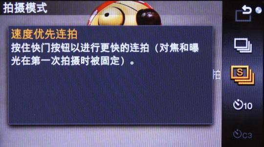 索尼NEX-5N在“速度优先连续拍摄”下最高可达约每秒10张(NEX-5C仅能7张/秒)。不过“速度优先连续拍摄”模式下对焦和曝光固定在第一帧图像处,也就是说不是张张测光张张对焦。