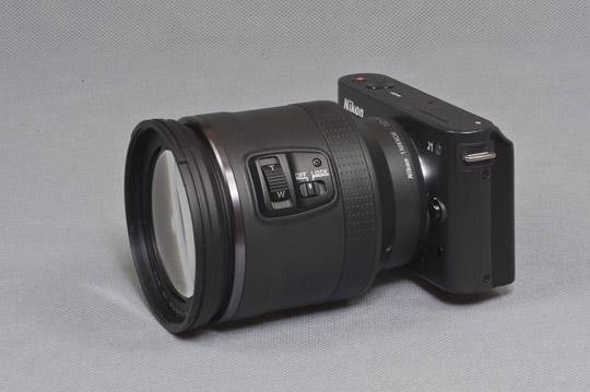 为何这样说呢?因为整个镜头上只有两个控制部件:一个用来变焦的拨杆,上面有W(Wide – 广角)和T(Tele - 望远)两个标记,还有一个锁定开关。和其他两个尼康1变焦镜头一样没有手动对焦环,如需手动对焦要在机身内进行。而镜头上也没有变焦环更没有不同焦段数字标记,变焦是靠推动T-W变焦拨杆进行,而变焦速度要比在其他镜头上手拧变焦环慢很多,因为它专为拍摄视频设计,推动拨杆变焦时镜头会以一个平滑的速度进行变焦。习惯了手动变焦摄影的用这支镜头变焦时一定会不太习惯,需要一个过程去适应。