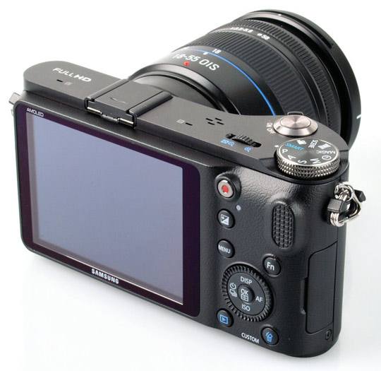 握持:NX200机身采用铝合金材质打造,并于握持处增加了防滑处理,配合上凸出的棱角设计,令持握感更加稳固。顶部的模式转盘、拨轮和快门按键操控更为方便,背面还设有一个单独的视频按钮。