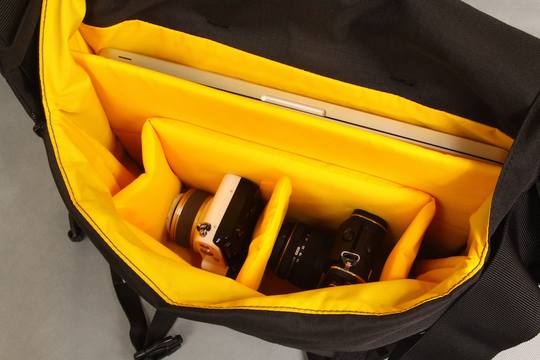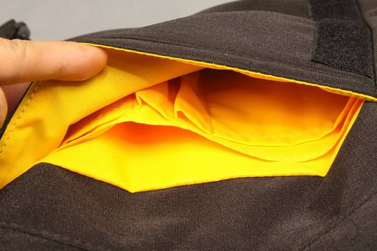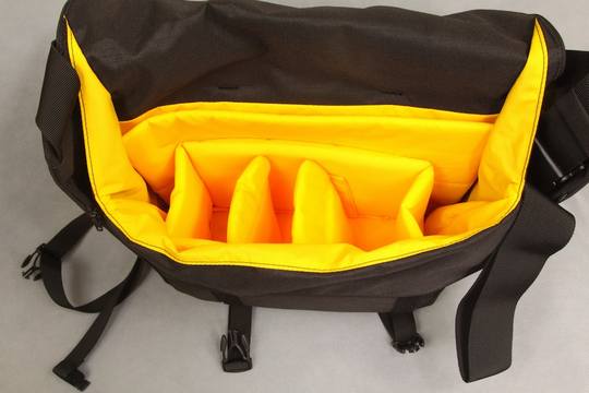 卡塔Orbit-110 DL的内部采用了橘黄色的明亮色彩设计,视觉上很舒服,上图我们可以很明晰的看出内部的格局,内有一个长方形分隔栏。其中都是可拆卸的,内部的主隔间高度是27cm,主隔间宽度是10cm。