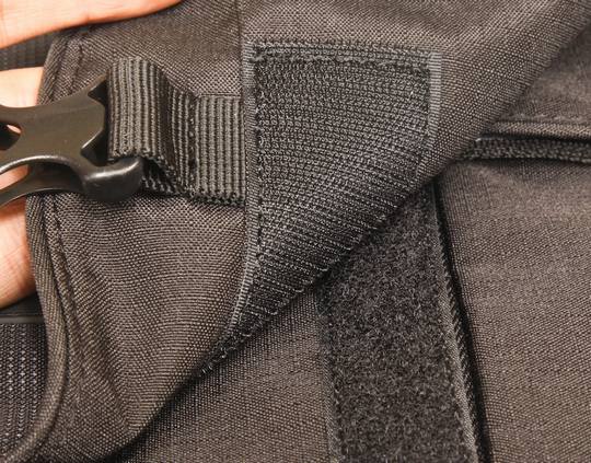肩带的设计比较特别,上面多加了一个锁扣,可以和侧面的一条带子进行斜跨固定。