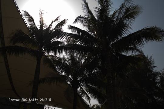 移轴镜头的特点是成像圈大,正常使用时中央至边缘的成像质量很高,但移轴量最大时渐晕明显,但这种暗边很耐看。