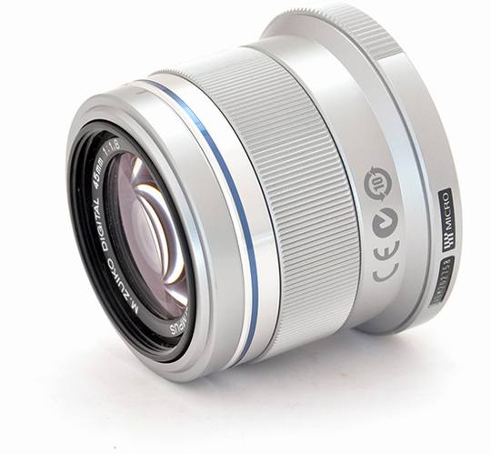 今年6月推出的奥林巴斯M.ZD 45/1.8采用了全新的外观设计和极具质感的铝金属材质;35mm等效焦距为90mm,MSC高速成像自动对焦技术具有快速、平稳和静音的特点,采用9片8组含2片电子高折射率镜片的光学结构,27°视角,拥有f/1.8超大光圈,是一款高品质的M4/3系统定焦镜头。