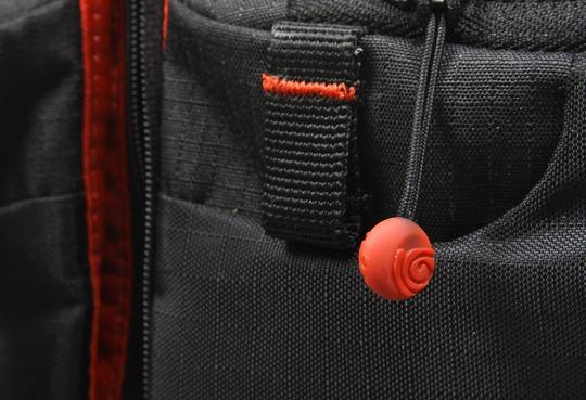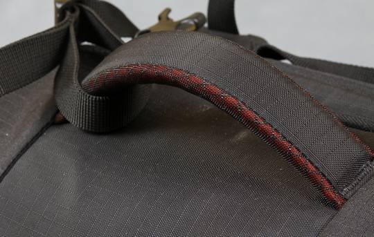 这款双肩摄影包依然采用了常见的摄影包塑料锁扣设计,不同之处在与它将一部分用皮套固定在了摄影包上,这样可以最大限度的避免锁扣的损坏几率,设计还是比较到位的。