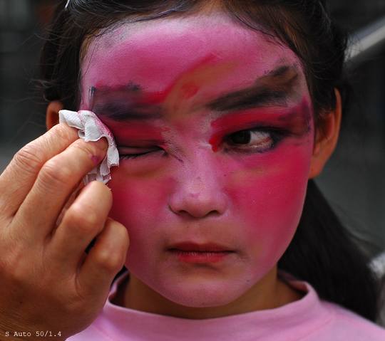 手里这支5cm/2放在干燥箱里一直没怎么拍,这次为了介绍镜头,到新天地试拍了一番,由于S5cm跟H50一样光圈环较薄,也没改口直接装上了。请看下面5张图,原先并没对该头仔细拍过,这次在D3s上试拍结果,感觉5cm/2对红色尤其出跳,并非整张片子趋红,而是镜头对画面红色部分灵敏度特高,感觉像CCD机子拍出来的,还有黄色部分也显亮丽。镜头分辨率和锐度相当好,注意图2(f2.8拍)右上角新天地下面小字母清晰可见。但5cm四角失光较重,f2.8时暗角仍较明显,f5.6时基本消失。5cm产量较小,是既能藏又能用的Nikkor单反老镜头。