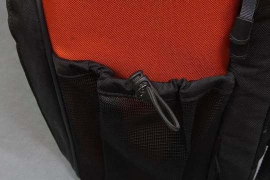 摄影包的一侧网兜设计方便放置水壶,可以根据水壶尺寸进行收缩。
