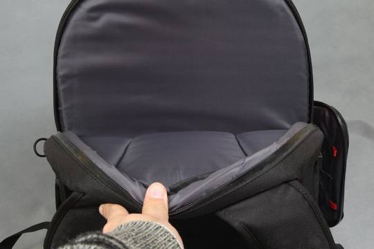 摄影包背面有笔记本仓位,可以轻松放下15寸笔记本。