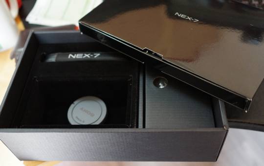 右上角那个写着NEX-7的扁盒子里放着说明书,光盘,保修卡等,没有细看,在整个包装里,其实是个盖子。