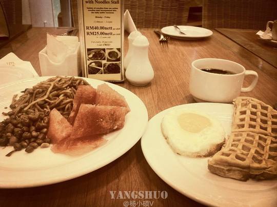 开始正式的游记吧!早晨起来在酒店用餐,台面上的文字已经换成了英文状态,RMB也换成了RM(马币,与人民币的汇率大约是一马币换2块人民币),这几天的数学成绩非常理想,算钱特别快~