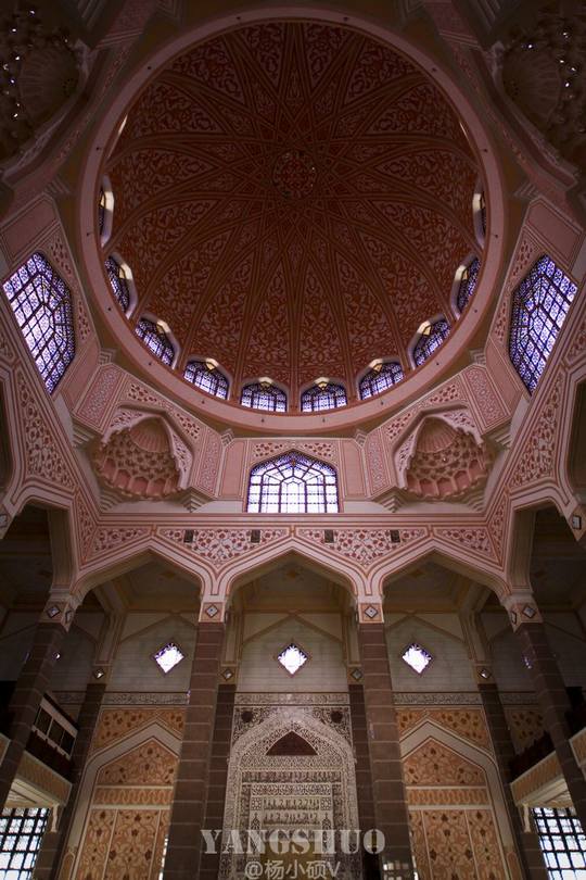 太子城著名的水上粉红清真寺,可容纳2万多信徒祈祷。通常清真寺是以蓝色、绿色和金色为主,而这座清真寺却以粉红色的砖头搭建,甚是与众不同。