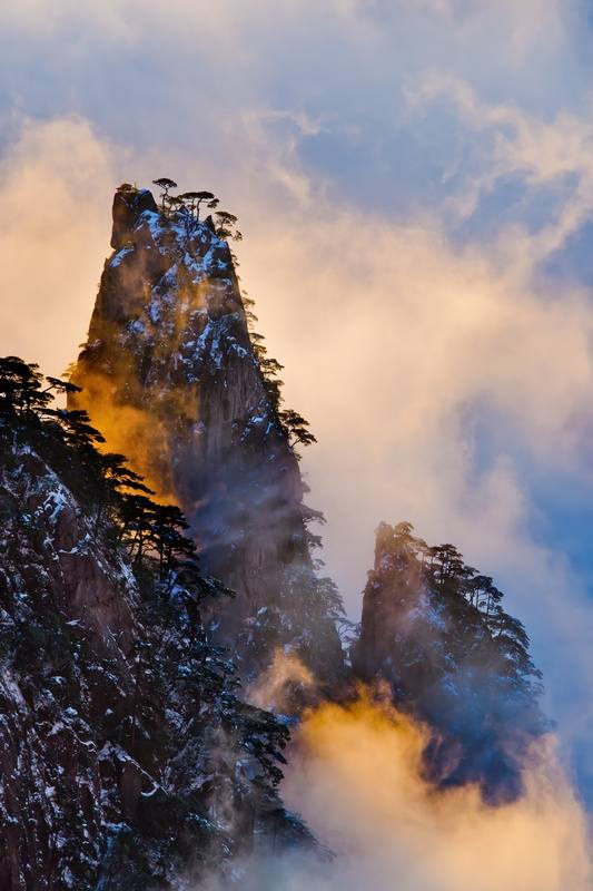 年初二下午冒着大雪上的山,当晚天气放晴,初三出现了云海美景,去的很值!这次黄山之行的片子,欢迎大家多多指点,多多交流。这是初三下午快到落日时分的西海云海,摄于群峰顶: