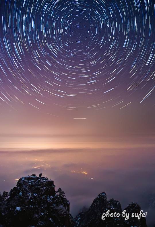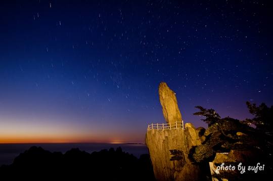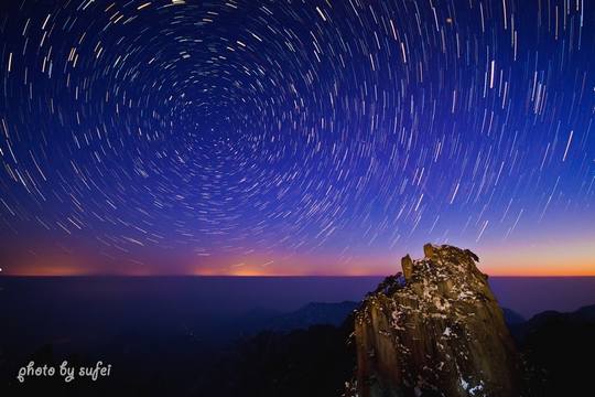 初三凌晨,在始信峰等待日出时拉的星轨,时间有限,只拉了20分钟,天就开始亮了。