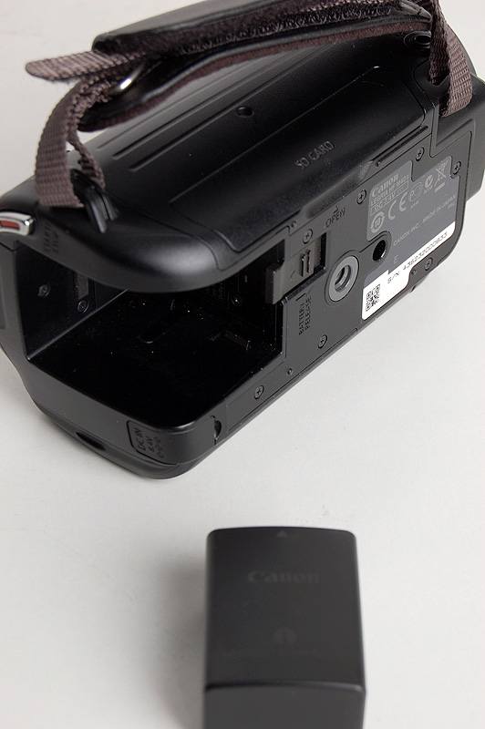 佳能HF M40的电池仓设计在机身尾部,用户可以很方便的装上和卸下电池,原配的电池是一块850mAh的锂电池,大概能拍摄约100分钟左右的视频,用户可以根据自己需求,选择更大容量的电池购买使用。