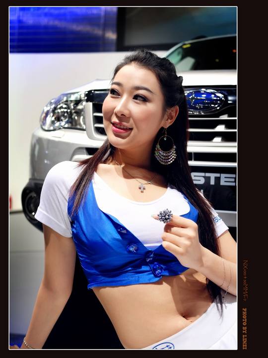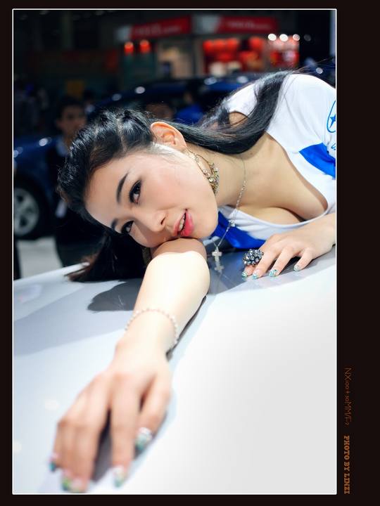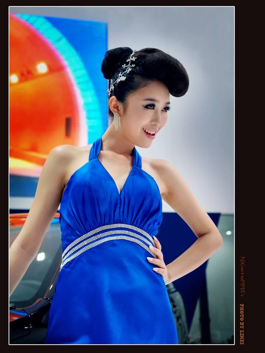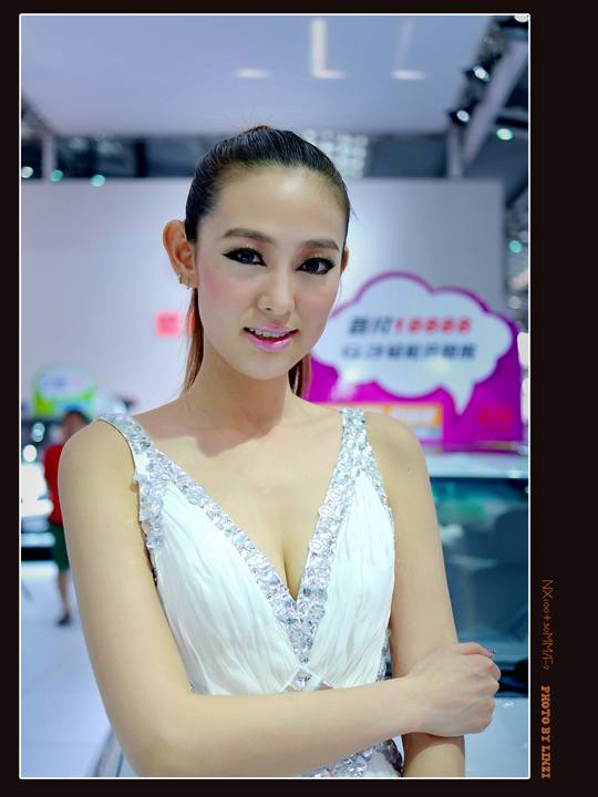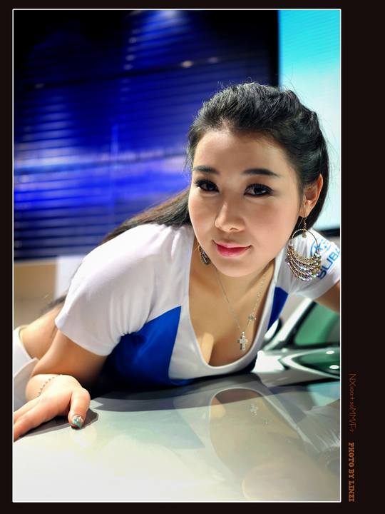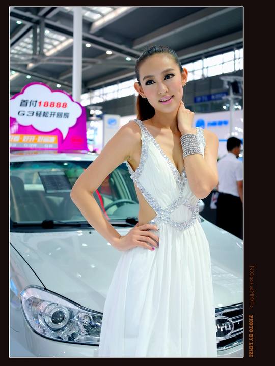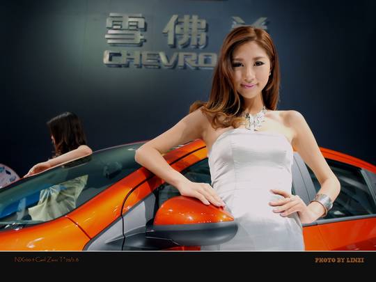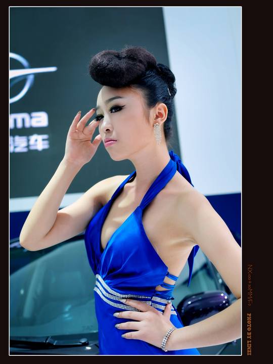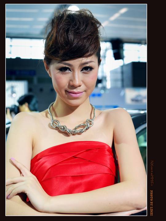 每每拍车展,都是最累的,标变、人像、长焦三个镜头几乎都带上,外加闪灯和三脚架,十多斤的器材,压在肩上,往往一圈下来,照片没有拍几张,人已累得近虚脱,而且还提心吊胆器材被盗或遗失。吸取以前“血”的教训,这次车展,只带了NX100微单和30/2,蔡司25/2.8两个镜头(其实90%的时间用30/2镜头在拍摄,毕竟手动头拍人像太慢太累),轻松上阵,边拍边逛,这种感觉,以前从来没有过。