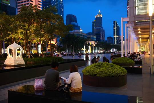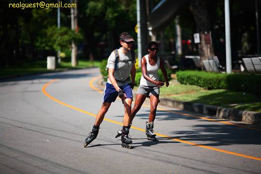 毗邻美国大使馆的Lumpini Park里,一对溜冰的情侣,看女选手的肤色多健康啊。