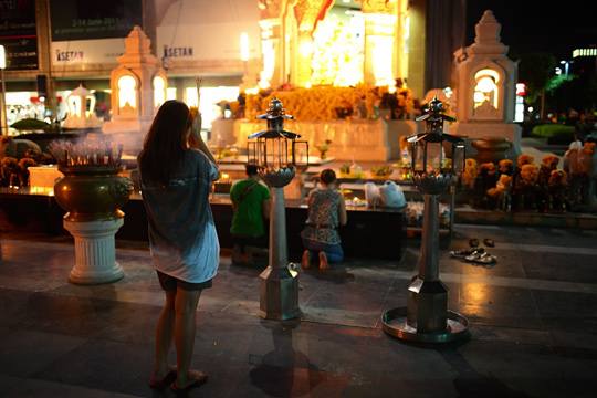 Central World附近,著名的四面佛,有泰国民族歌舞伴随着祈祷的人们