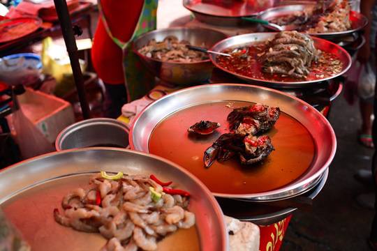 泰式风味的海鲜。别看是街边摊,但看起来干干净净的。