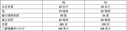 P系列目前有两个型号:P0和P1。P0适合与135相机,而且能够侧向倾斜90度以让相机拍摄人像(竖立)模式。P0适合大画幅相机,最大侧向倾斜角度35度。