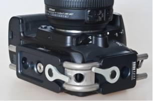 L型快装板通过一个六角螺丝安装到相机机身,然后松开两个拨杆调整快装板位置以达到紧密结合。