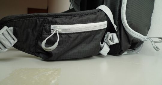 底部腰带上面,左右各添加了小的收纳包,不管是放置手机,还是存储卡,或是小的物件,让你随手可拿,大大为使用者提供了便携,不得不说的是拉链设计感也尤为强烈,采用了伸缩性的拉钩,更有良好的使用性。