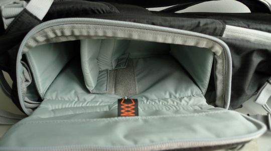 包的中间部分,厂商还为使用者提供了装笔记本的地方,即使我们出门旅行,背上包也可以将拍摄完得照片直接拿出笔记本进行修饰和调色,大大方便了背上摄影包还要另带笔记本包的麻烦。