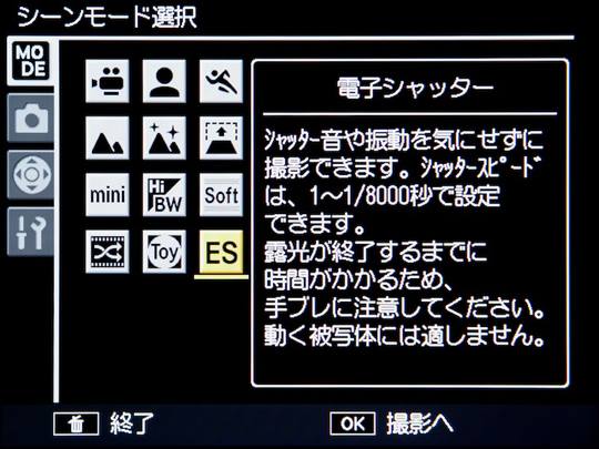 ![]() 选择ES模式,即采用电子快门 |